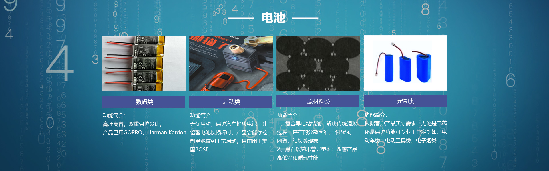 公司是一家集智能電子和新能源電池研發生產銷售的新型企業,產品廣泛應用于海、陸、空設備領域、民用和軍工市場;為多家機構研發生產專用特種充電器和鋰電池產品。